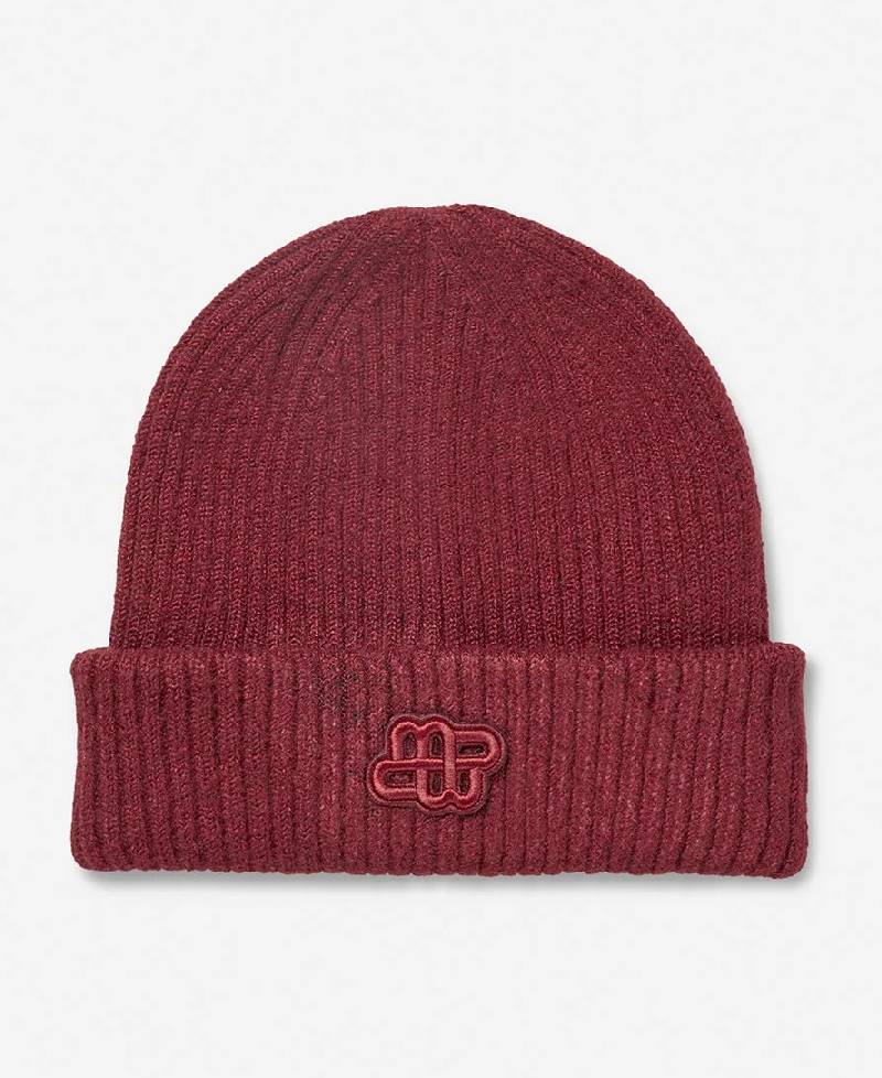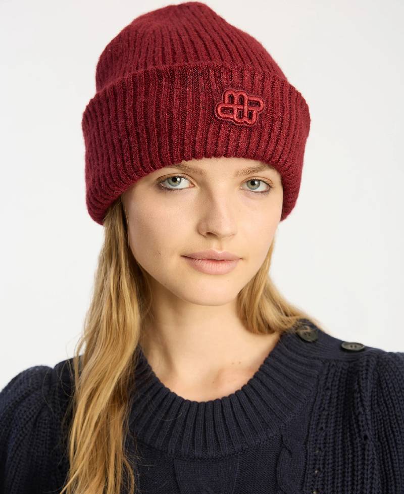 En smuk ribstrikket hue med et elegant MUNTHE-emblem på forsiden. Fremstillet af en blød blanding af genanvendt polyester.