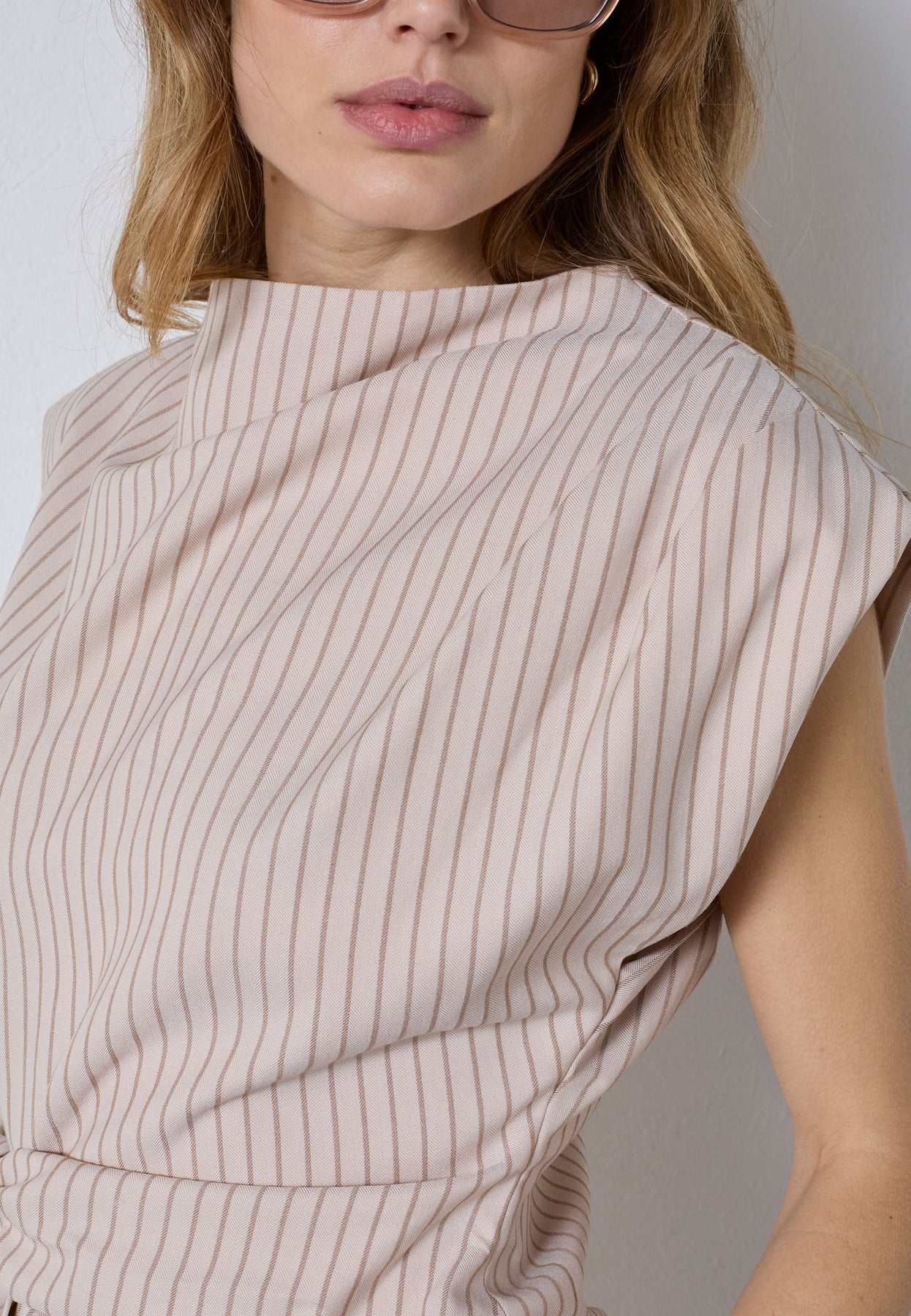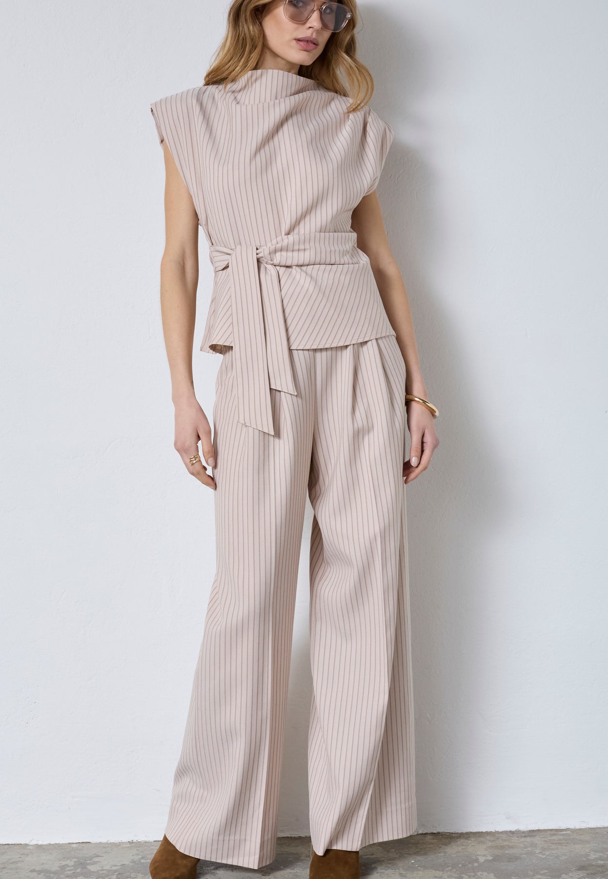 Salviecc er en bluse med plisserede detaljer, der tilfører et let og elegant præg til ethvert outfit. Farven Bone giver et afdæmpet og stilfuldt udtryk, som er nem at kombinere med både hverdagstøj og til mere formelle anledninger. Stoffets bløde sammensætning af polyester og viscose sikrer komfort og et flot fald.