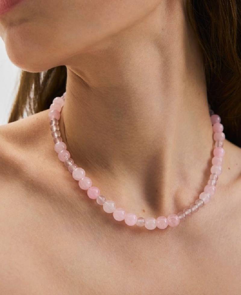 Type: Halskæde med rosenkvarts i lyserøde nuancer.