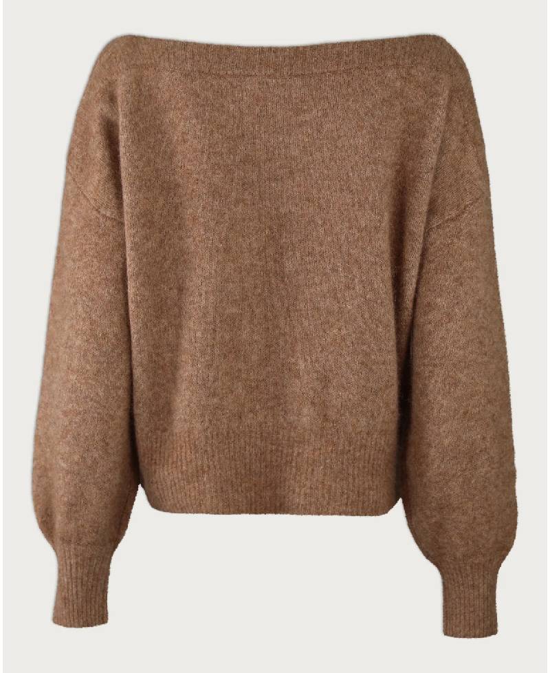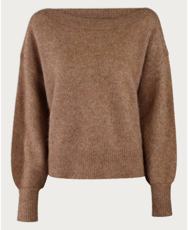 Malou er en vaskebjørns-trøje med bådudskæring, sænkede skuldre og lange ærmer. Den har rib langs halsudskæringen samt langs skuldersømmen og en lidt bredere ribkant forneden og ved ærmeafslutningen.